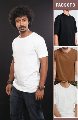 Meet our three plain t-shirts combo! These are simple but essential shirts for your wardrobe. They're comfy and look good with anything. You can wear them on lazy days at home or when you're out and about. Made from strong material, they'll stay nice even after many washes. Get ready for any day with these easy-to-wear, comfy t-shirts!