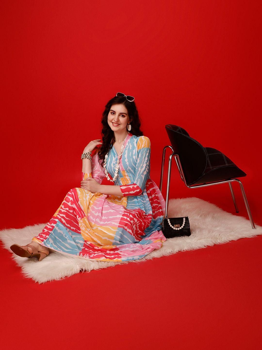 Plus Size Women's Georgette Prined Flared Maxi Dress