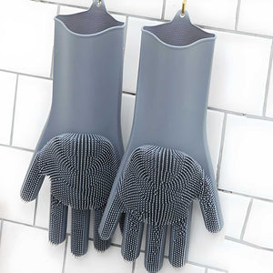 The Silicone Dish Washing Gloves, your new best friend for household chores. These gloves are made from high-quality silicone and designed to make dishwashing, cleaning, and even pet grooming a breeze.