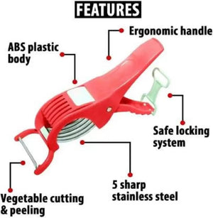 Product Name: 2 in 1 Vegetable Cutter with Peeler (Multicolour) / 2 in 1 Veg Cutter Stainless Steel 5 Blade Vegetable & Fruit Cutter for Kitchen